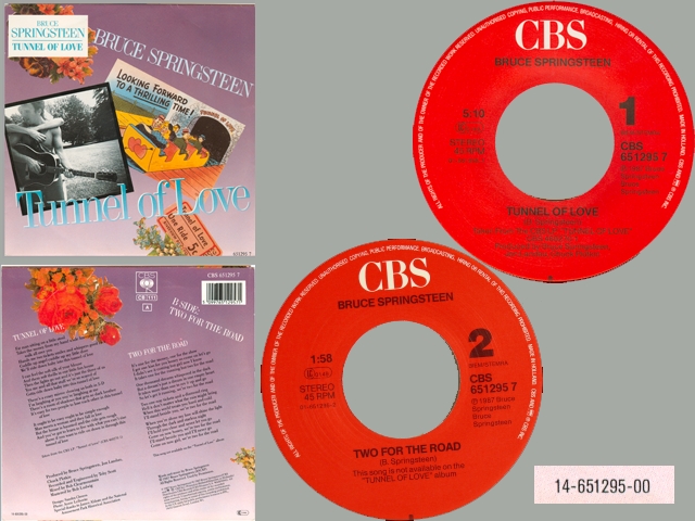 Very rare withdrawn cover of this single, featuring a white "Tunnel of love" inset on the front and bearing on rear the part number 14-651295-00 instead of the usual 01-651295-00 which can be found on the circulated version.